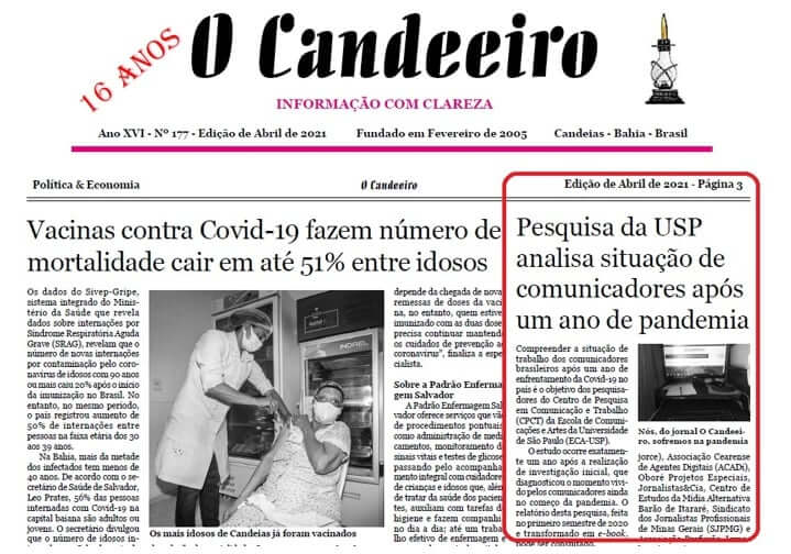 Diversos veículos de imprensa têm divulgado a nova pesquisa do CPCT sobre os comunicadores e a Covid-19.